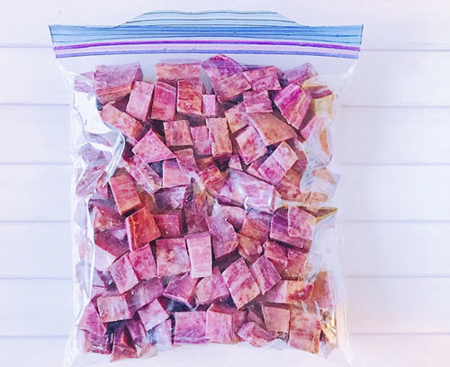 煮粥或者煮飯時(shí)加幾塊紫薯進(jìn)去味道會(huì)更加好吃,但通用我們一次不會(huì)用到一大顆紫薯,因此剩下的紫薯要切塊放冷…
